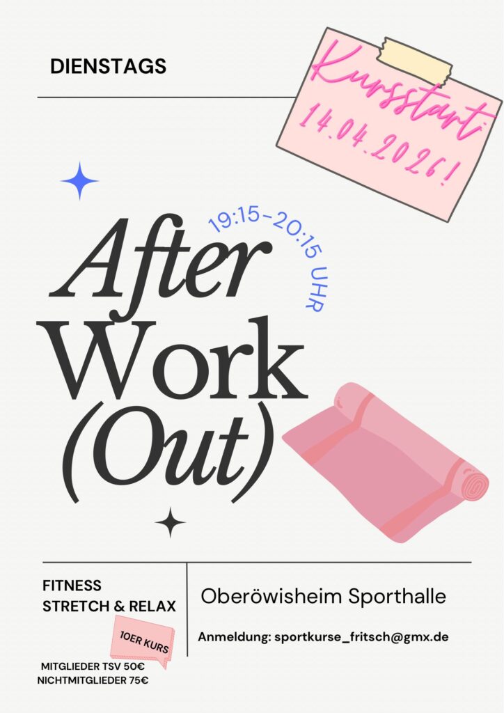 Du willst nach der Arbeit abschalten, dich bewegen und gleichzeitig etwas für Körper & Geist tun? Dann ist unser neuer Kurs genau das Richtige für dich! Ab dem 14.04.2026 starten wir gemeinsam in entspannte und aktive Dienstagabende 🗓 Wann?* Jeden Dienstag, 19:15 – 20:15 Uhr 📍 Wo?* Sporthalle Oberöwisheim (Burggartenstr. 7, 76703 Kraichtal) 🧘♂️ Was […]
